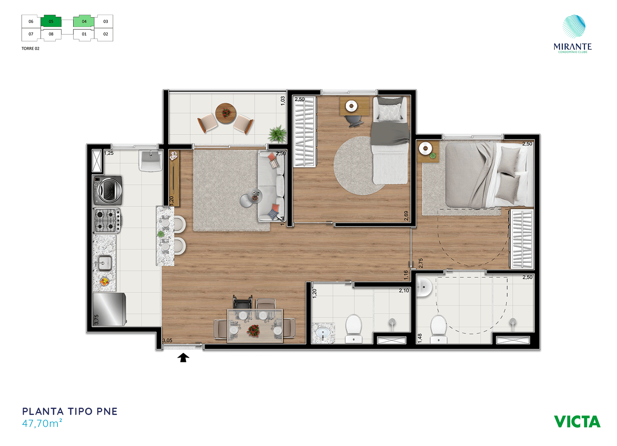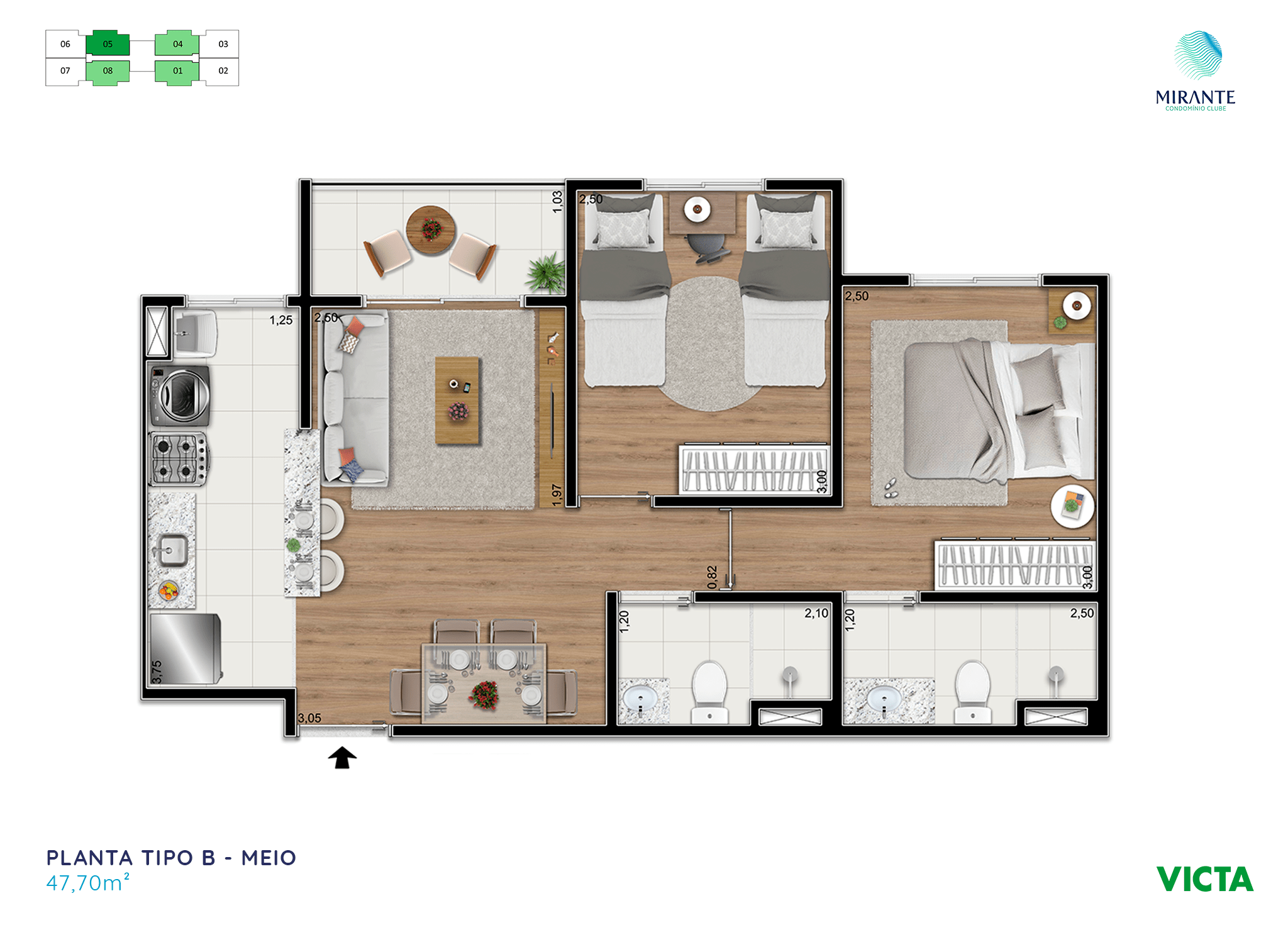 Este empreendimento possui imóveis de 47,70 m2 à 78,66 m2 disponíveis em 9 modelos de planta.